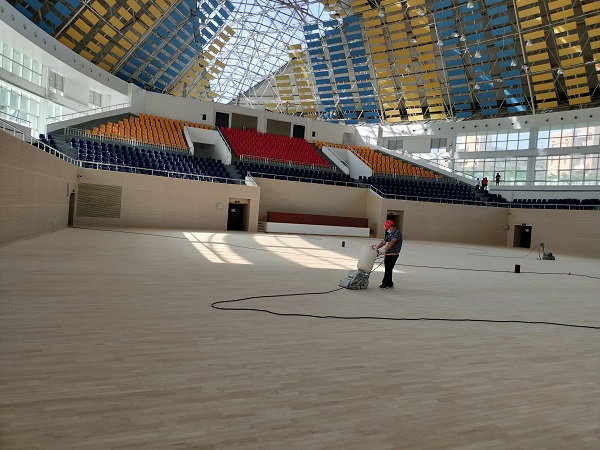 工人打磨地板油漆
